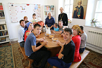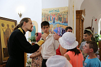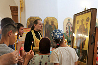 Настоятель храма иерей Иоанн Бакушкин вместе с воспитанниками учреждения совершил молебен у иконы святителя Николая Чудотворца «Никола Зарайский», которая по благословению митрополита Крутицкого и Коломенского Павла шествует с водным Крестным ходом по храмам Коломенской епархии. После чего за чаепитием иерей Иоанн рассказал ребятам историю возникновения традиции водного крестного хода, которая началась почти 800 лет назад.