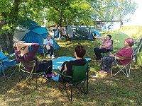 27 июля года завершил работу палаточный семейный лагерь, поселившийся на десять дней на поляне у Богоявленского храма в деревне Глебово Талдомского округа. Это не лагерь в привычном понимании, а скорее, совместное пребывание родителей со своими детьми на природе и полное самооблуживание, возможность вырваться из комфорта цивилизации, почувствовать другую жизнь. Полупоходные условия, совместная молитва в Богоявленском храме перед иконой Божией Матери «Скоропослушница», спортивные игры, купание в озере, беседы с психологом и священниками, дискуссии, мастер-классы, песни у костра – словом, программа жизни была очень насыщенной.