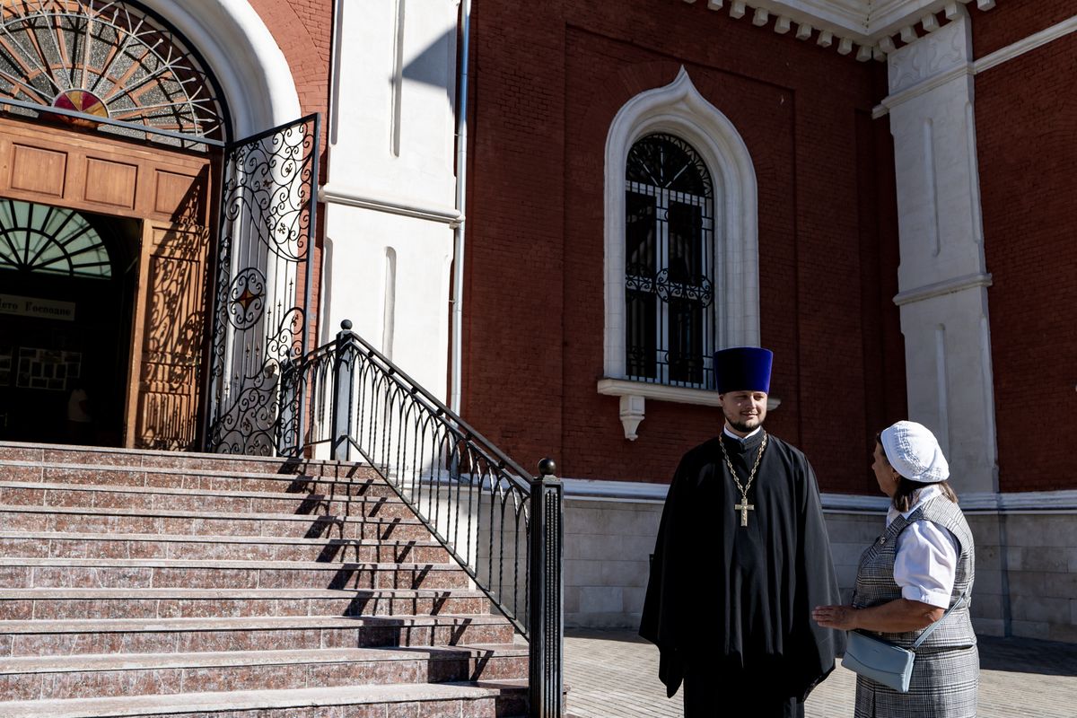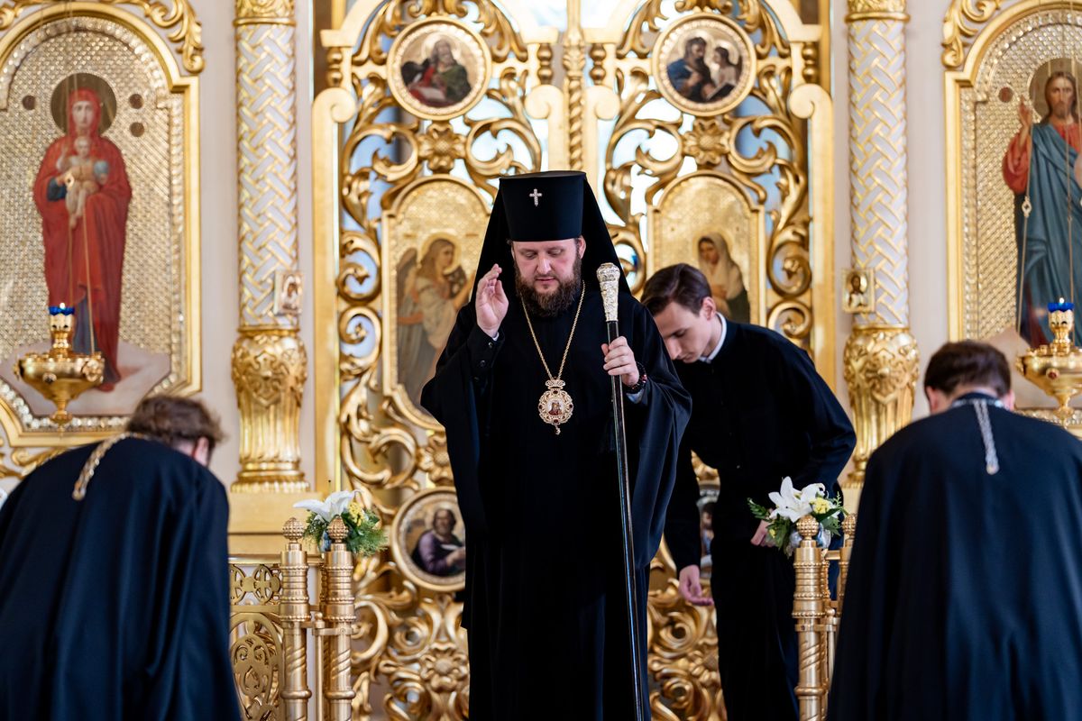 По сугубой ектении была вознесена молитва о восстановлении мира. Богослужебные песнопения исполнил хор Вознесенской Давидовой пустыни «Держава» под управлением регента Ильи Мельникова.