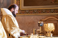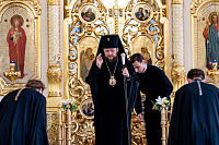 Его Высокопреосвященству сослужили благочинный Серпуховского церковного округа иерей Игорь Чабан и духовенство Подольской епархии.