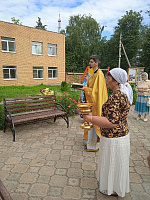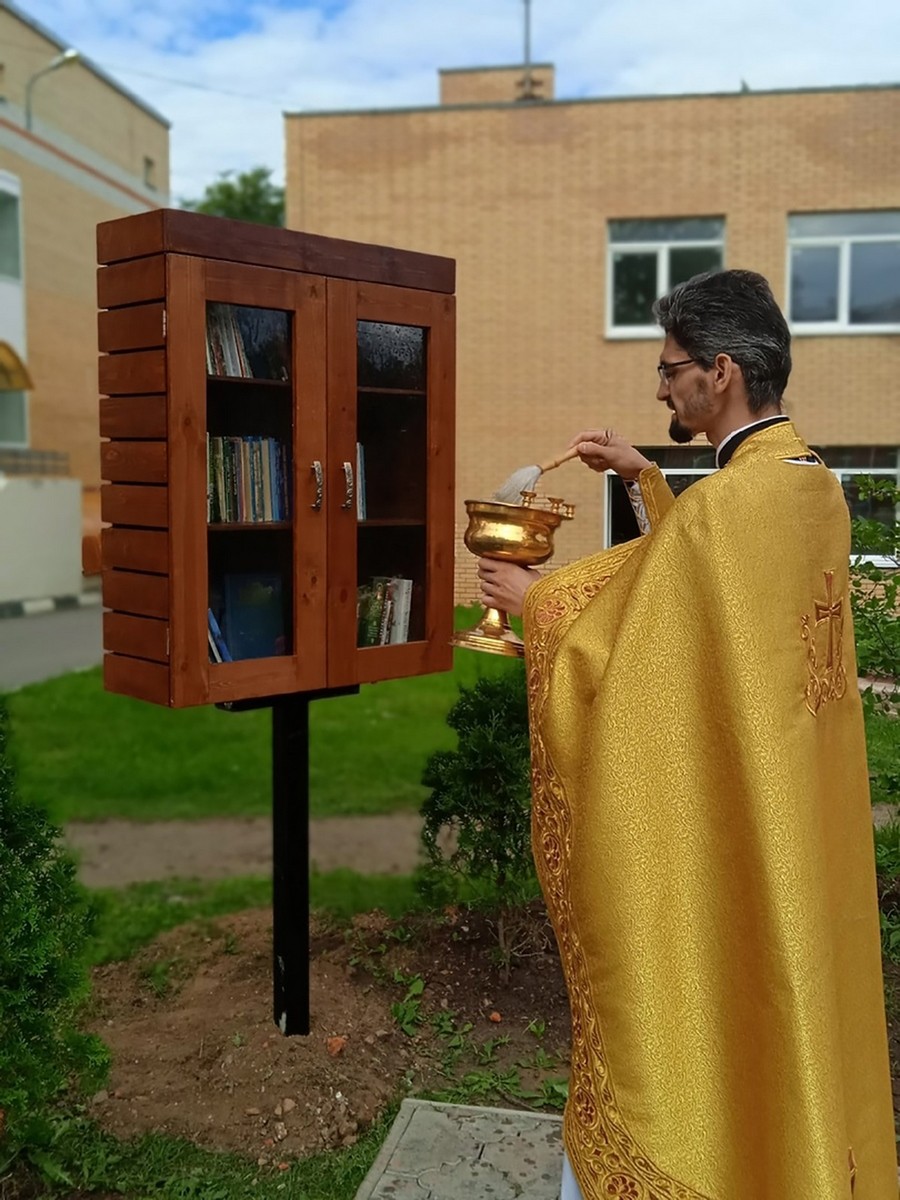 31 июля после Божественной литургии в Пантелеимоновском храме г. Дмитрова настоятель храма иерей Артемий Базатин совершил освящение уличной библиотеки.