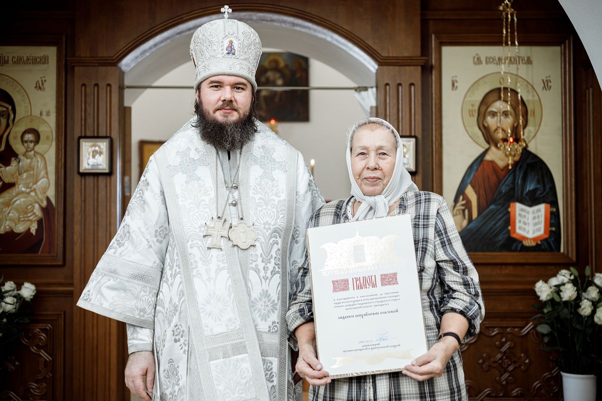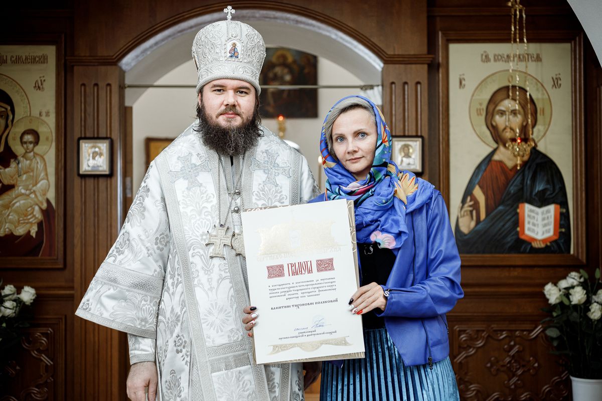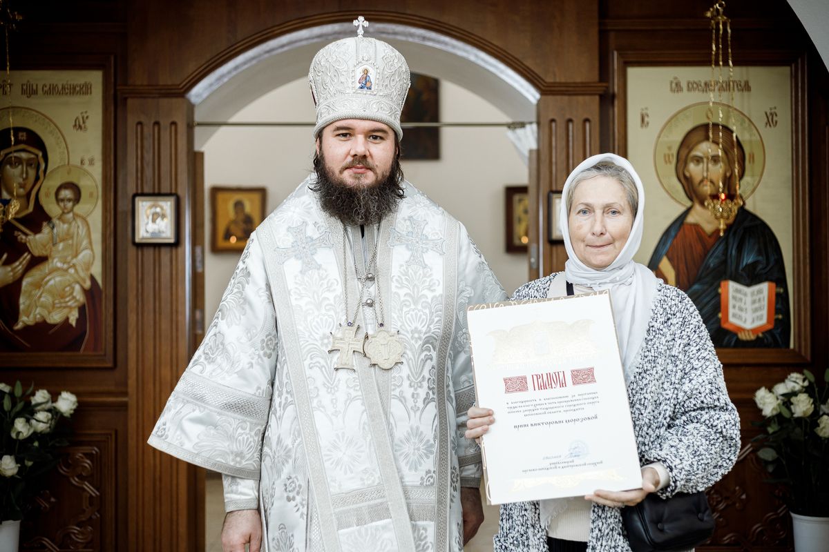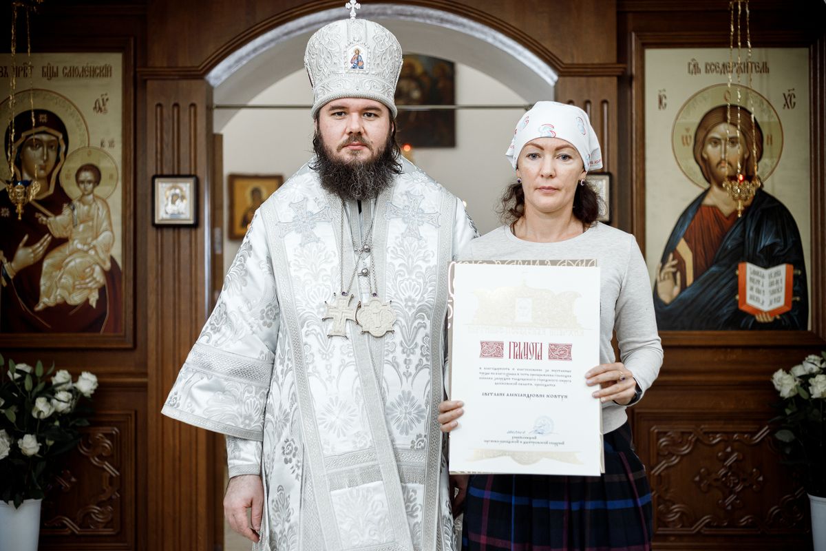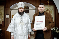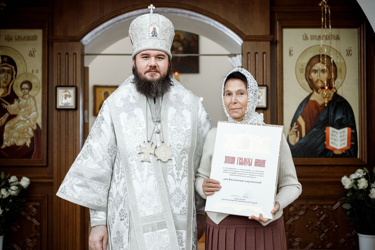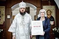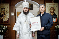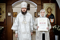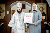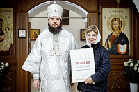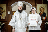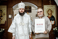 Затем епископ Фома вручил Патриаршие и епархиальные награды благодетелям храма.
