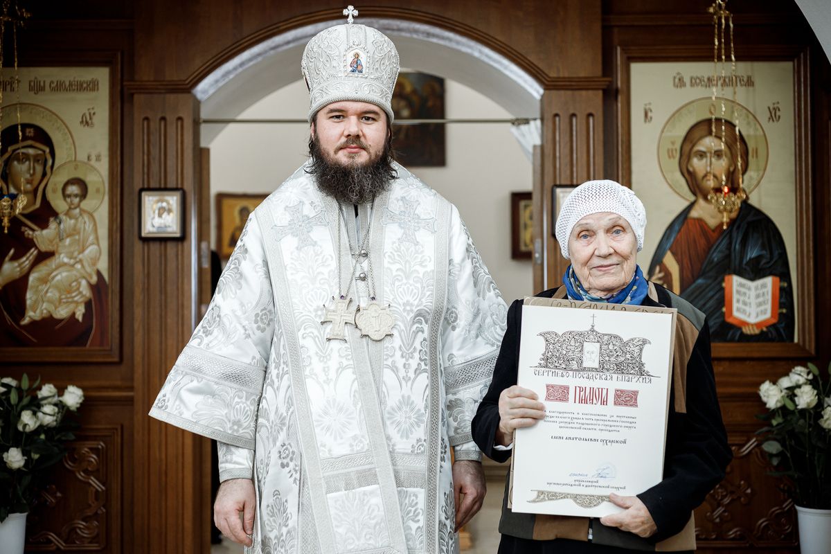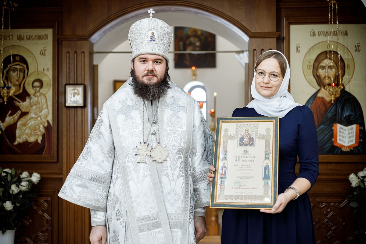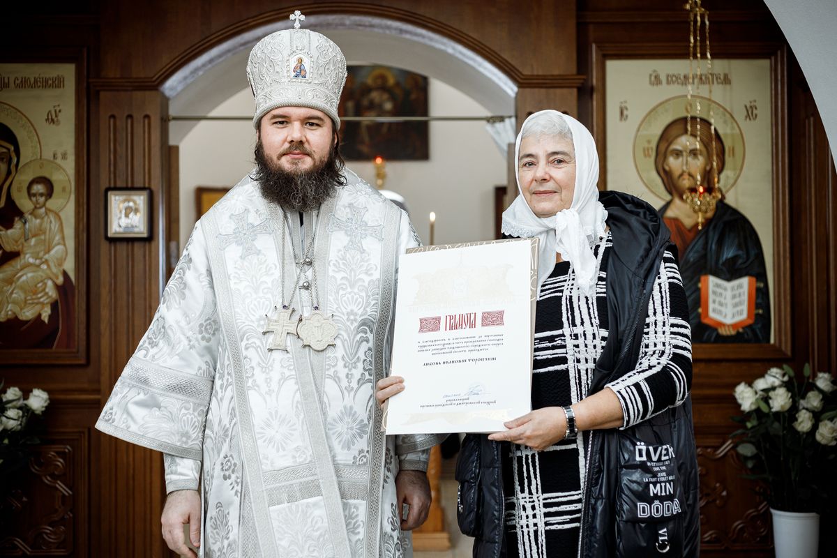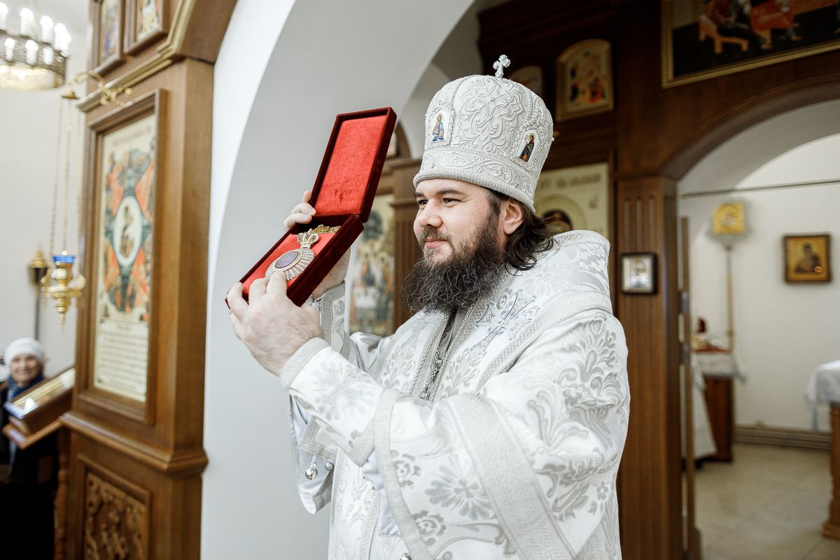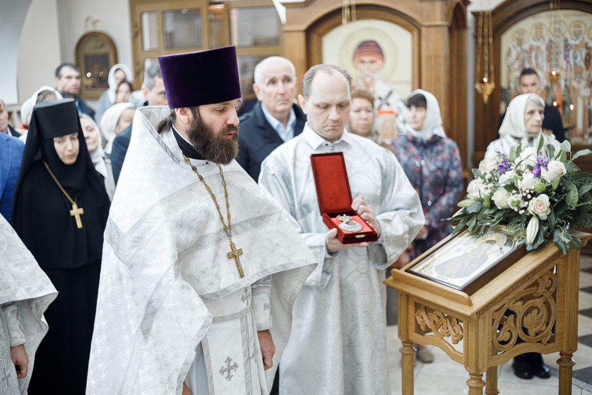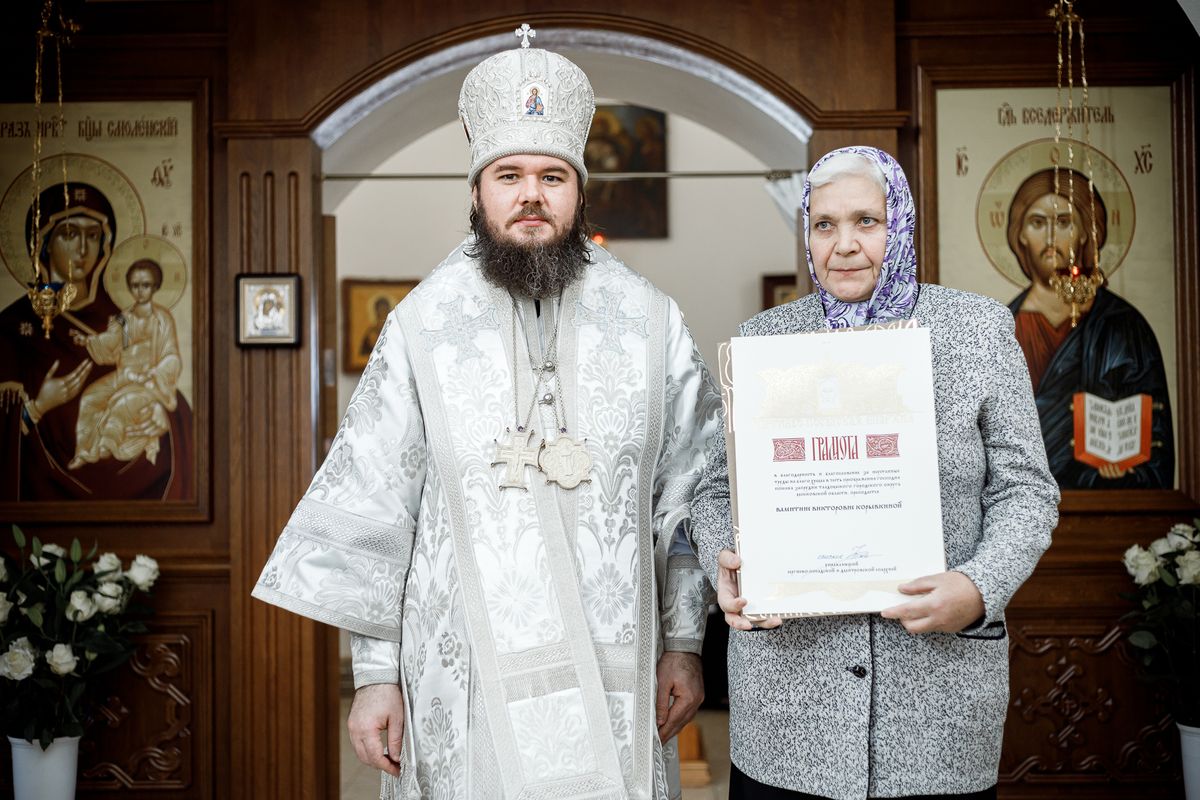 Затем епископ Фома вручил Патриаршие и епархиальные награды благодетелям храма.