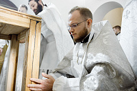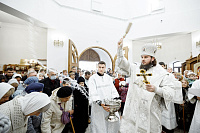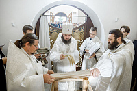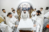 18 сентября епископ Сергиево-Посадский и Дмитровский Фома совершил Великое освящение храма в честь Преображения Господня в п. Запрудня Талдомского г.о. Московской области и Божественную литургию в новоосвященном храме.