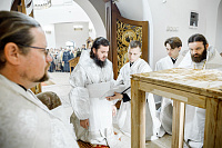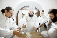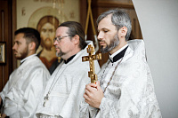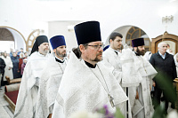 Его Преосвященству сослужили Секретарь Сергиево-Посадской епархии протоиерей Димитрий Оловянников, благочинный Дубненско-Талдомского церковного округа протоиерей Павел Мурзич, благочинный Рогачёвского церковного округа иерей Сергий Сафронов, благочинный Дмитровского церковного округа иерей Алексий Рыженков, а также приглашенное духовенство.
