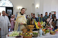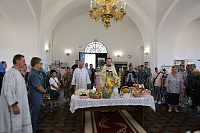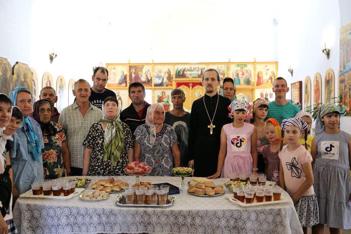 За Божественной литургией гости вместе с прихожанами исповедались и причастились Святых Христовых Таин. По окончании Литургии настоятель иерей Иоанн Бакушкин совершил освящение плодов нового урожая, после чего для гостей храма было организовано чаепитие.