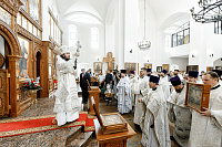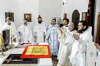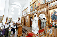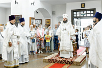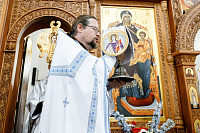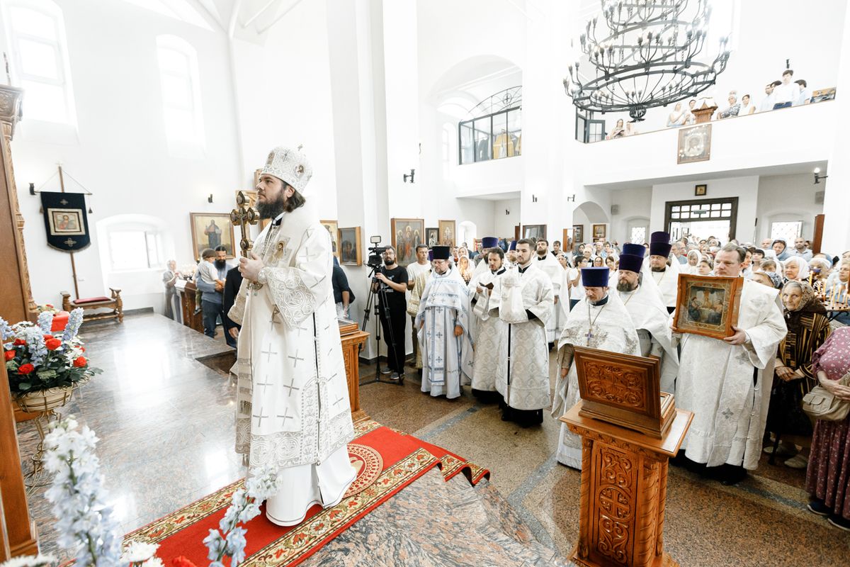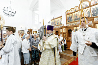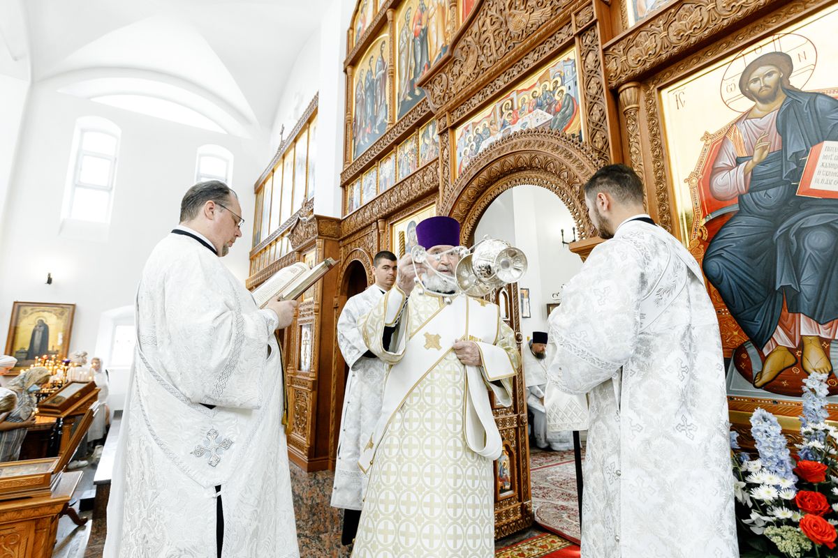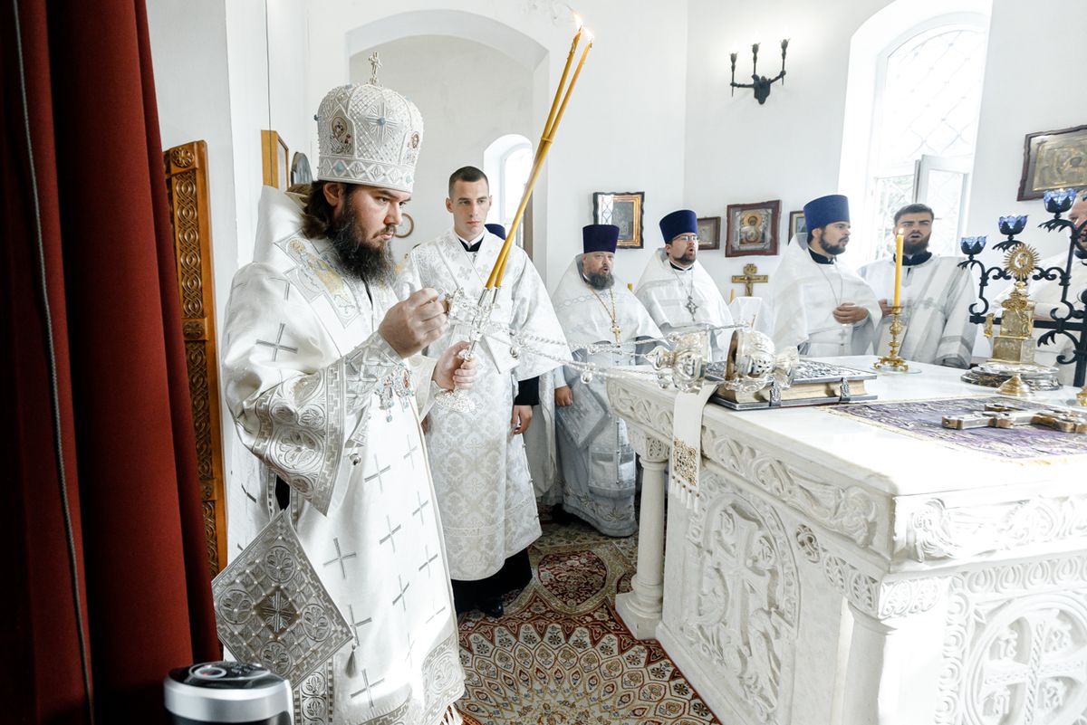 19 августа епископ Сергиево-Посадский и Дмитровский Фома совершил Литургию в храме Преображения Господня г. Долгопрудного.