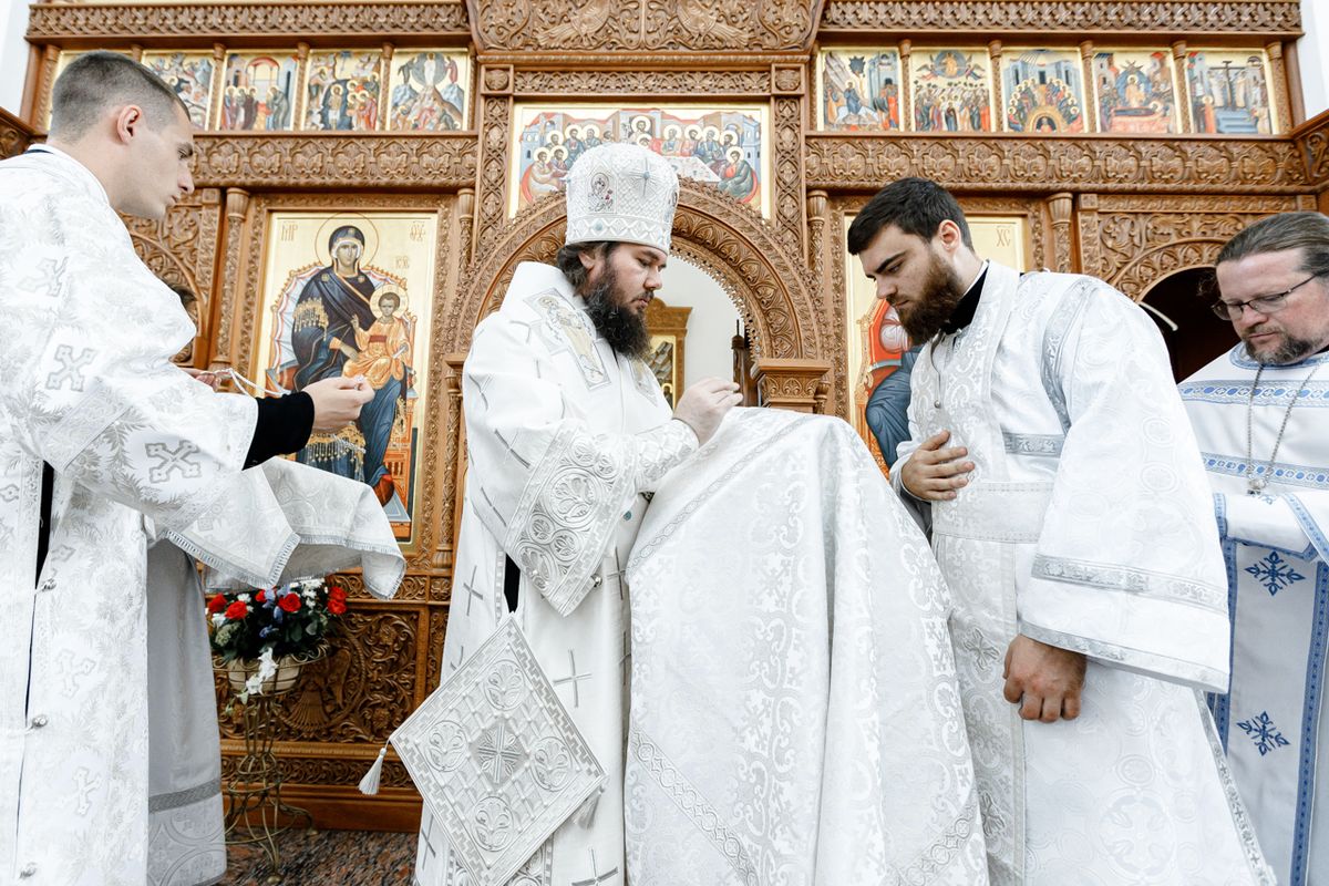 Во время Божественной литургии Преосвященный Фома возвел в сан иерея диакона Михаила Гэина.