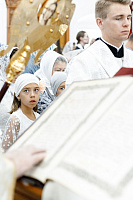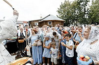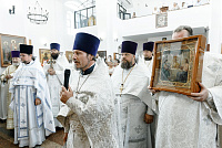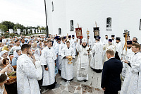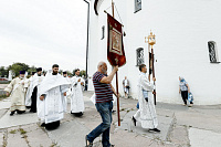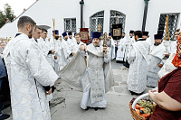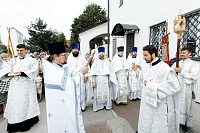 После Литургии состоялся крестный ход по случаю престольного праздника храма и освящение плодов нового урожая.