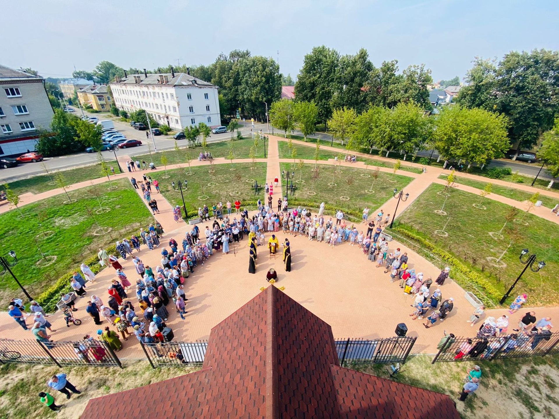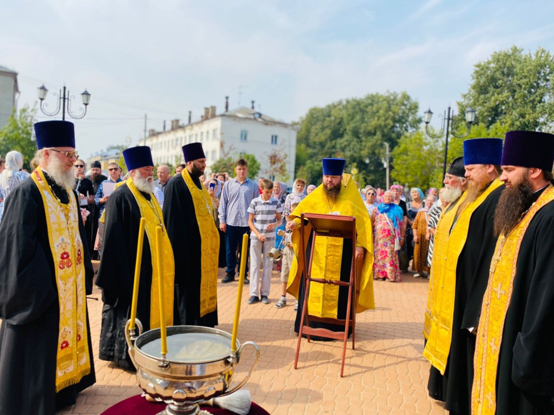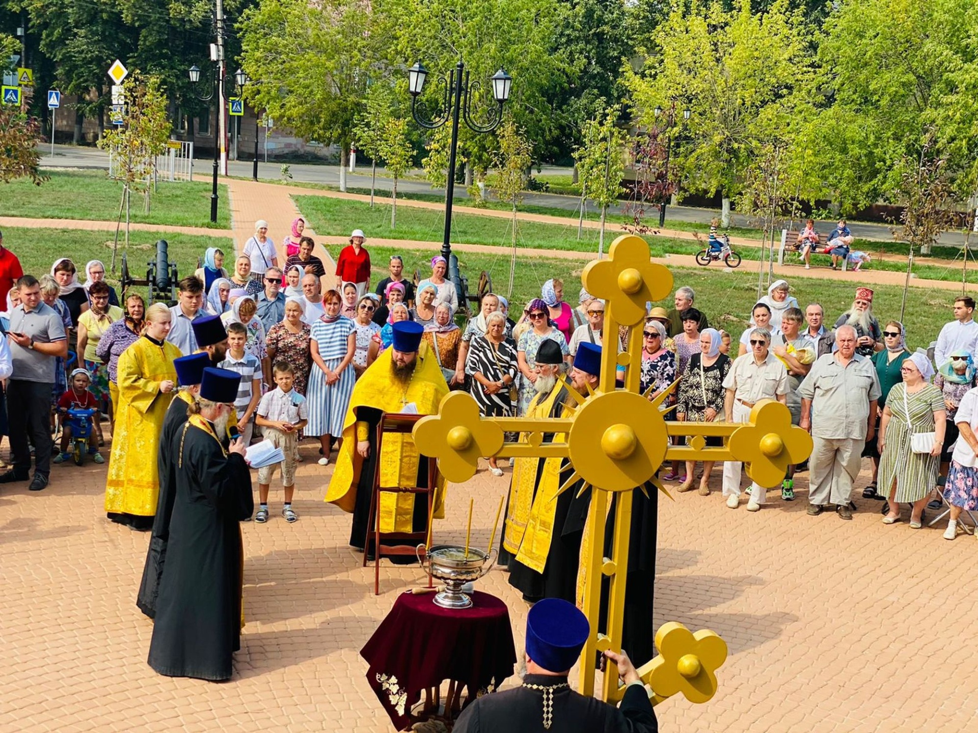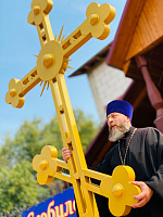 По окончании богослужения крест был водружён на купол храма, после чего отец благочинный обратился к собравшимся с приветственным словом.
