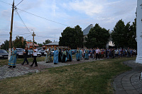 После великого славословия с пением погребального «Святый Боже» был совершен крестный ход с плащаницей вокруг храма.