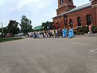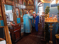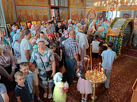 Водосвятный молебен с чтением акафиста Успению Пресвятой Богородицы и Божественную литургию, завершившуюся крестным ходом, совершил настоятель храма протоиерей Михаил Сокрутов.
