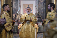Затем Его Преосвященство обратился к сослужившему духовенству и молящимся с архипастырским словом.