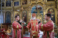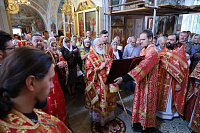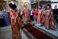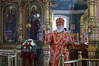 По окончании богослужения было совершено славление Пресвятой Богородицы и святым мученикам, после чего Владыка обратился к молящимся с архипастырским словом