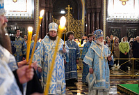 Богослужебные песнопения исполнили Патриарший и камерный хоры Храма Христа Спасителя (регенты — И.Б. Толкачев и С.С. Сидоренко).