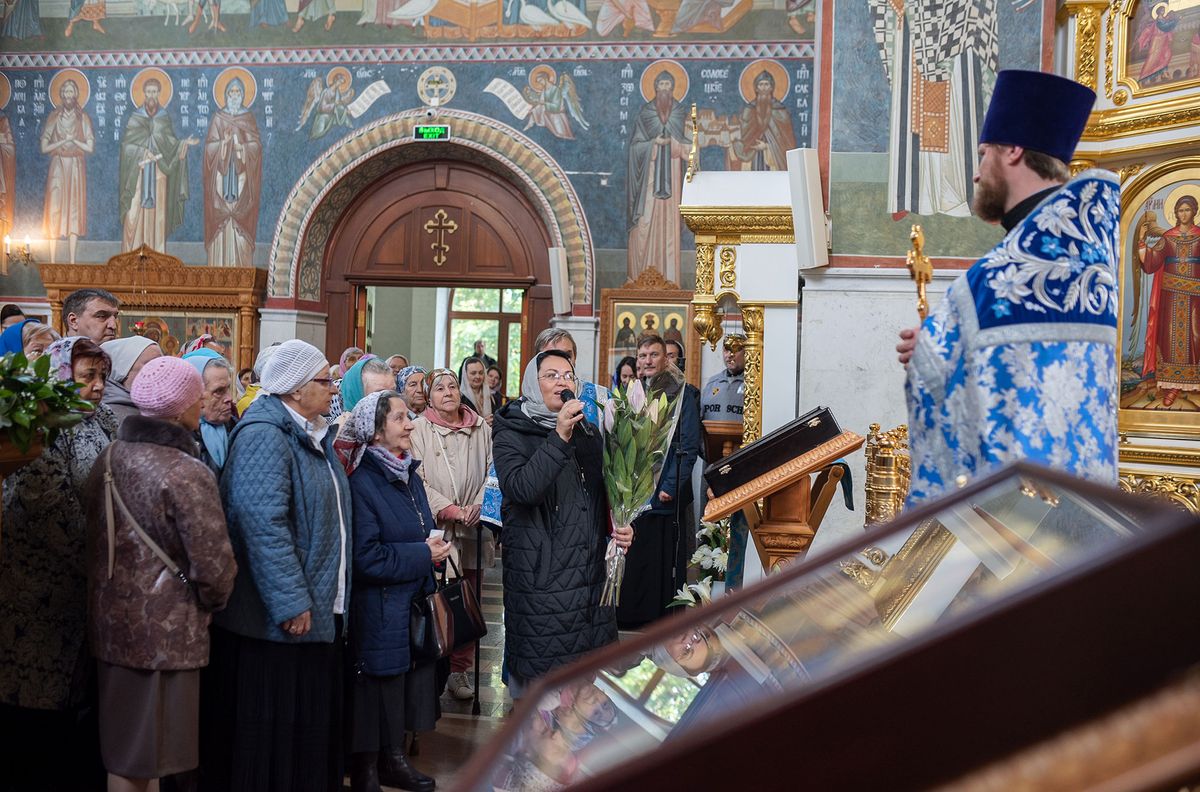 В завершение богослужения отец Димитрий поздравил верующих с праздником. Представитель администрации города вручила настоятелю поздравительный адрес и поздравила с престольным днем прихожан.