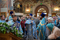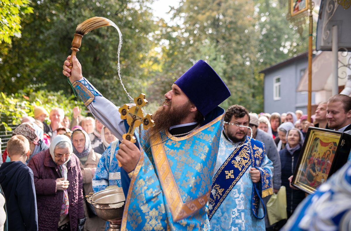 По окончании Литургии священнослужители и миряне совершили крестный ход вокруг храма под праздничный благовест. Далее было совершено славление Божией Матери.