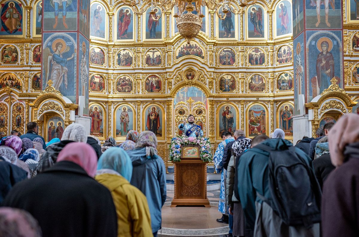 На престольный день в храме собралось много прихожан, чтобы молитвенно прославить Царицу Небесную.