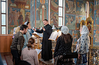 Богослужебные песнопения исполнил хор храма под управлением регента Александра Дедуха.