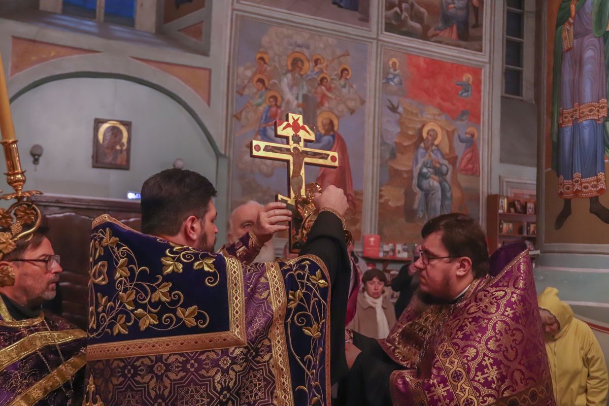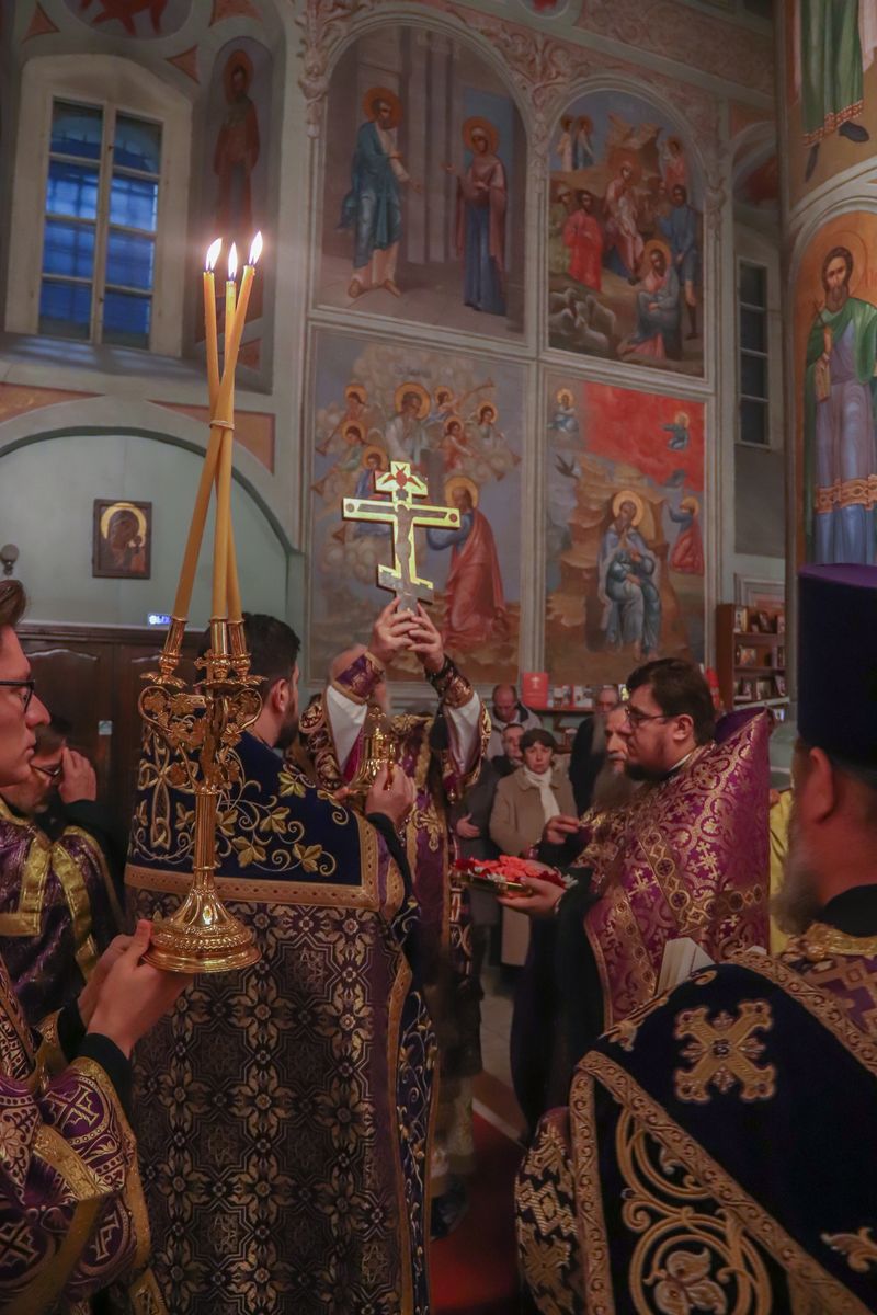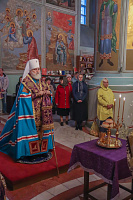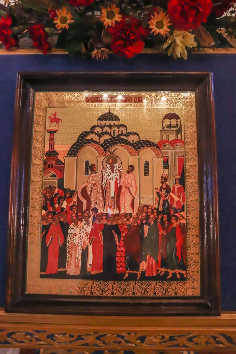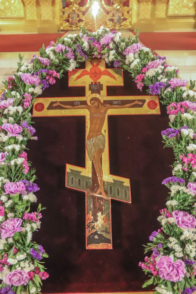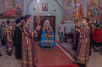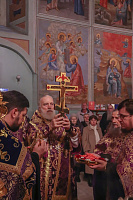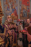 После великого славословия Его Высокопреосвященство совершил чин Воздвижения Креста.