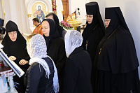 За богослужением молились: игумении Никитского женского монастыря города Кашира Магдалина (Чекулаева), Казанского женского монастыря города Егорьевска Мария (Макарова), Свято-Троицкого Мариинского женского монастыря города Егорьевска Илария (Иляхинская) и Введенского Владычнего женского монастыря города Серпухова Алексия (Петрова).