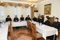 Затем под председательством благочинного состоялось братское совещание духовенства Долгопрудненского церковного округа. Отец Андрей довел до сведения собравшихся содержание распоряжений и циркуляров епископа Сергиево-Посадского и Дмитровского Фомы, рассказал о ходе реставрационных работ на Казанском храме в селе Трехсвятское Дмитровского района. Особое внимание им было уделено вопросам, касающимся функционирования приходских воскресных школ.