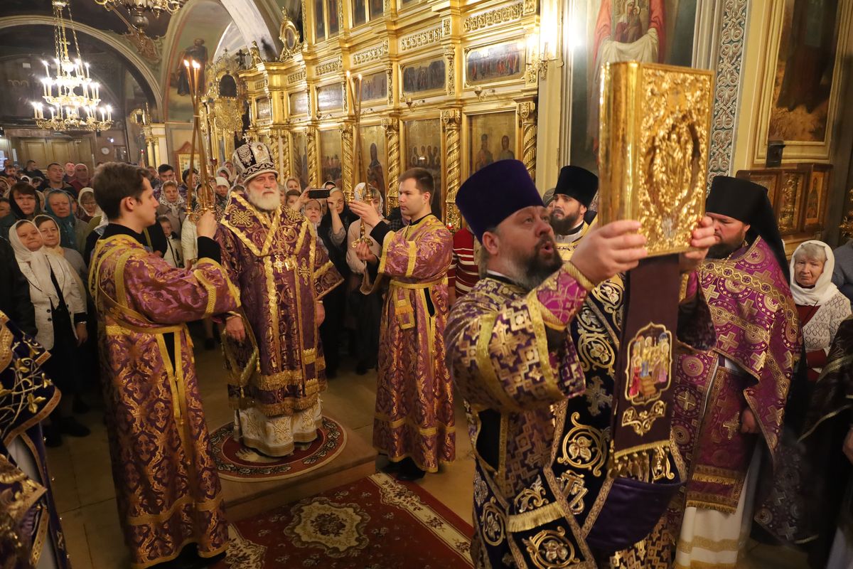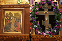 По окончании богослужения было совершено славление Креста Господня, после чего Владыка обратился к молящимся с архипастырским словом.