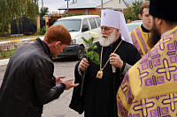 Настоятель храма поблагодарил Архипастыря за визит и преподнёс в дар образ "Доброго Пастыря".