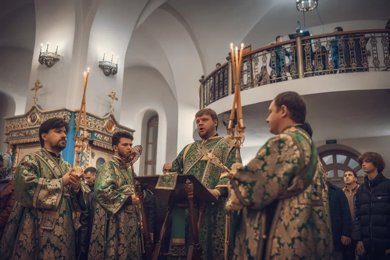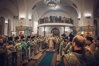 Ночную Божественную литургию в соборе в полночь возглавил епископ Одинцовский и Красногорский Фома в сослужении духовенства епархии.