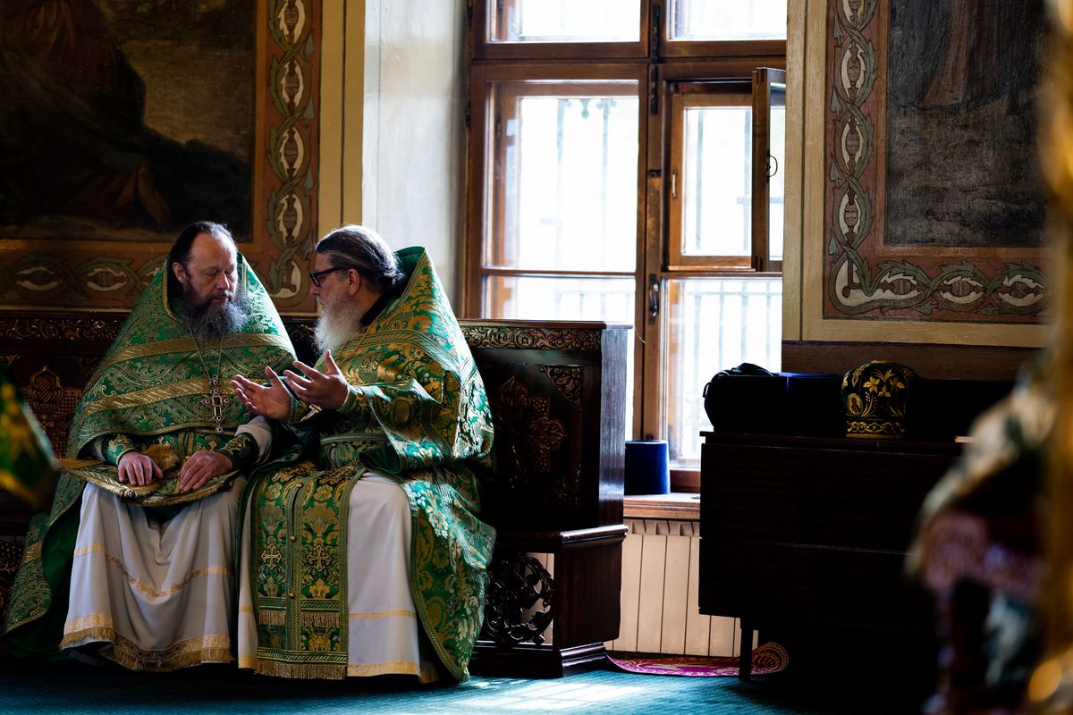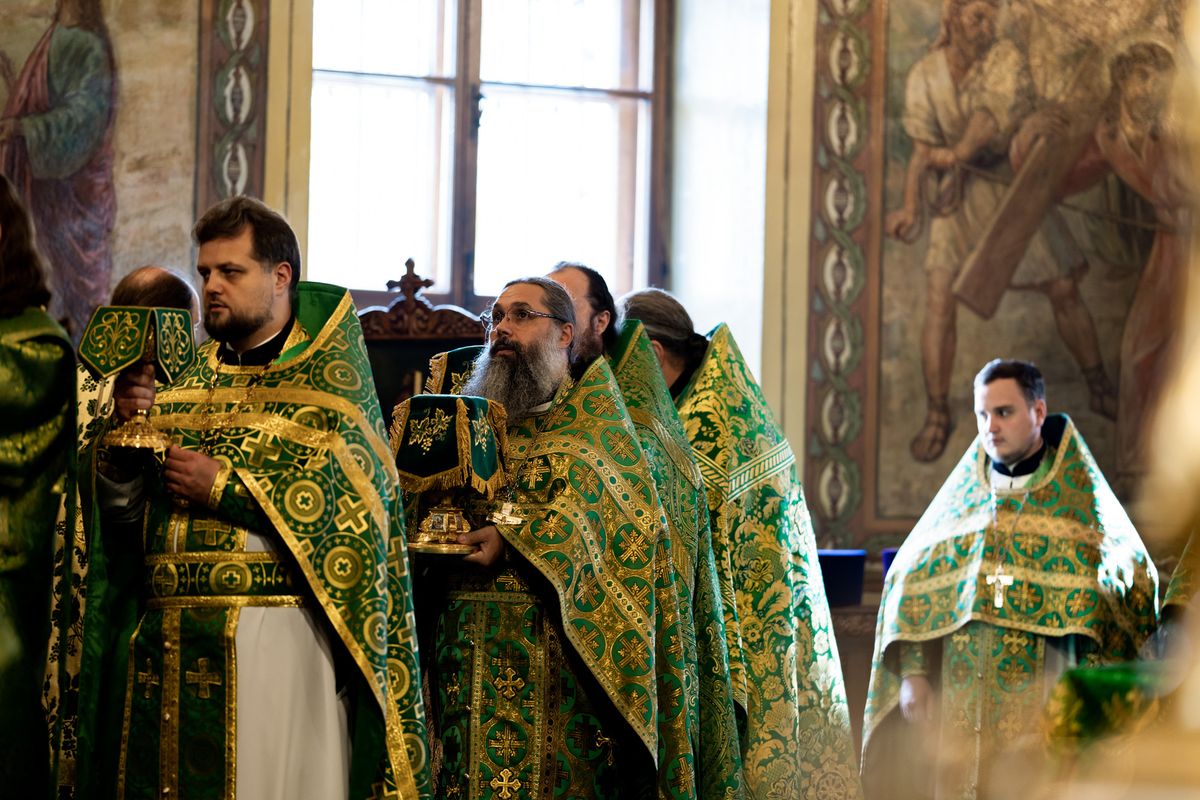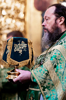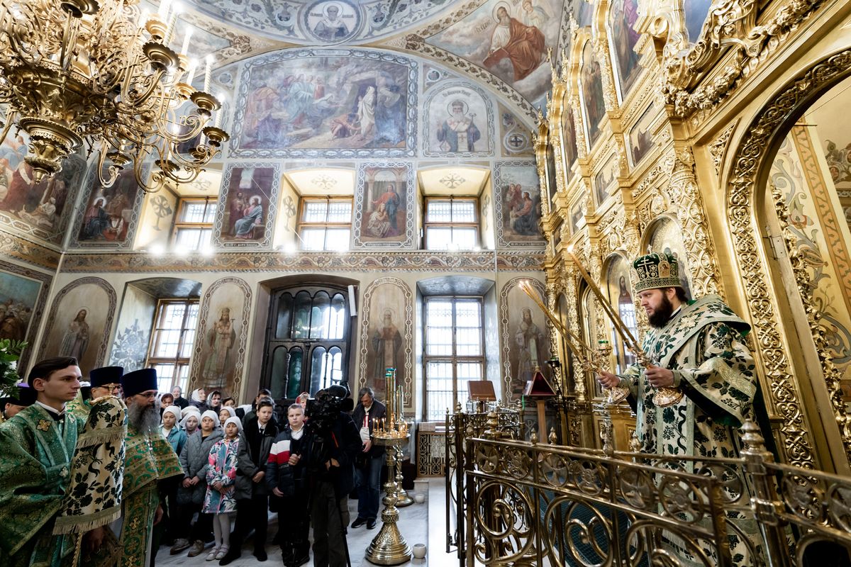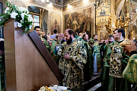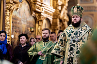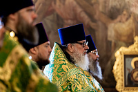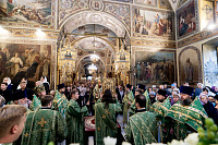 По сугубой ектении была вознесена молитва о Святой Руси. Богослужебные песнопения исполнил архиерейский хор под управлением Александра Веретенникова.