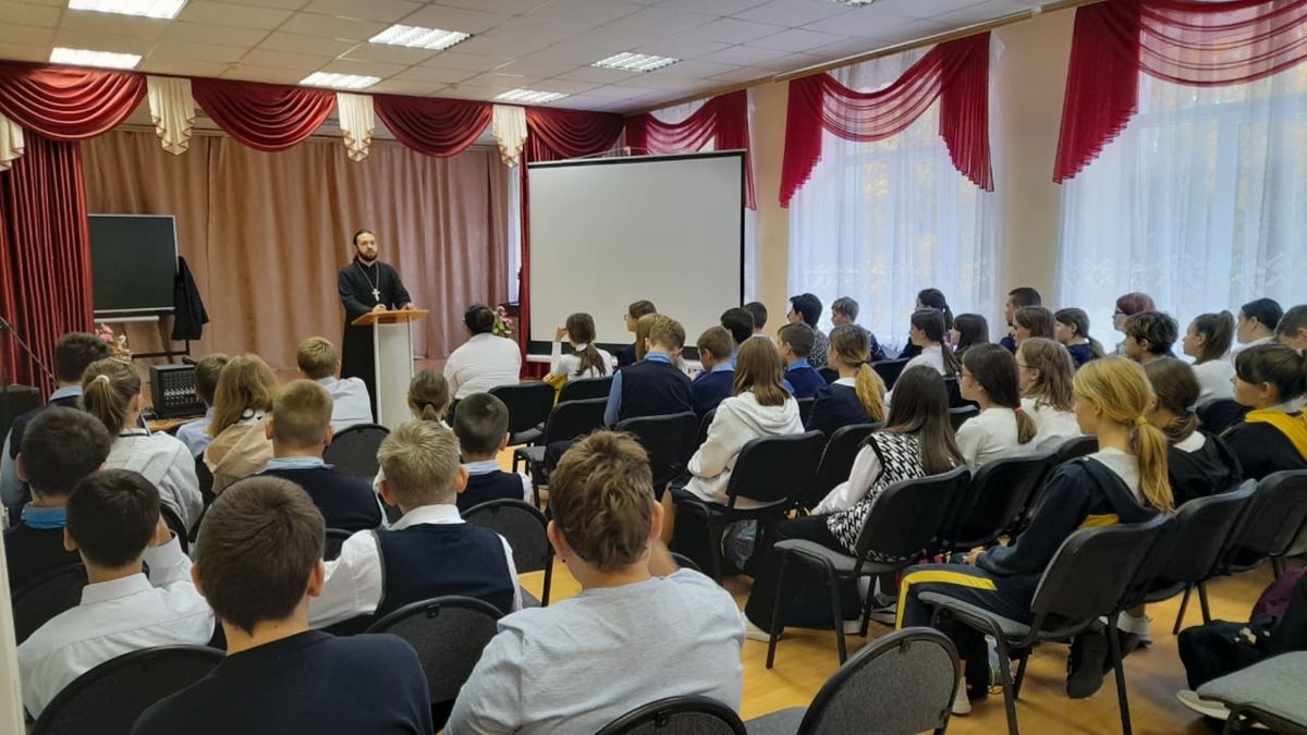 6 октября в школе посёлка Зарайский городского округа Зарайск состоялась встреча клирика Ильинского храма города Зарайск иерея Романа Куделина с учащимися 7 - 9 классов.