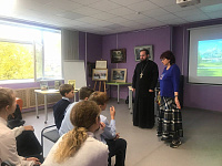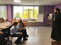 6 октября настоятель храма Божией Матери «Игумения горы Афонской» поселка Северный иерей Симон Абрамсон встретился с учениками 6-7 классов в школе №3 города Талдома. В преддверии празднования дня памяти преподобного Сергия Радонежского отец Симон познакомил школьников с житием преподобного, рассказал о духовном подвиге святого и его исторической миссии. После беседы батюшка ответил на вопросы ребят.
