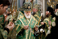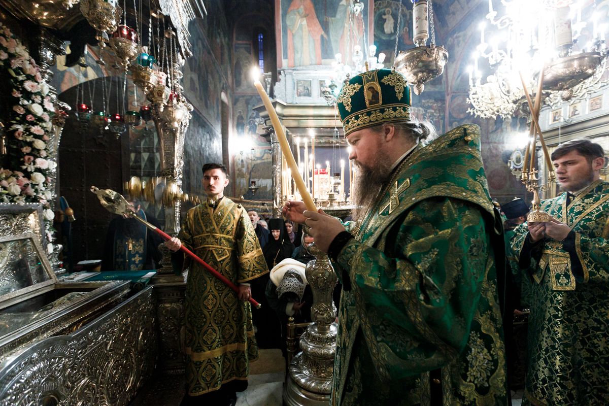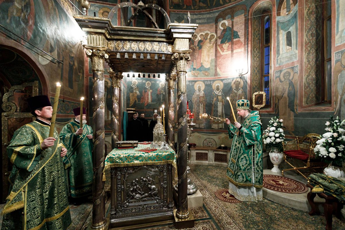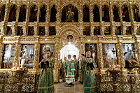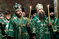 В Трапезном храме праздничное всенощное бдение возглавил Патриарший наместник Московской митрополии митрополит Крутицкий и Коломенский Павел.