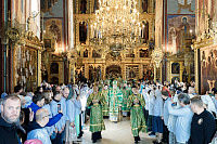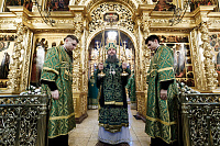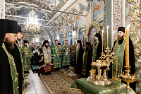 7 октября в Троицком соборе Лавры всенощное бдение в сослужении архиереев Русской Православной Церкви совершил управляющий делами Московской Патриархии, первый викарий Патриарха Московского и всея Руси по г. Москве митрополит Воскресенский Дионисий.