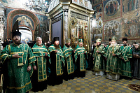 Богослужебные песнопения исполнили: в Успенском соборе — справа — мужской хор под управлением иеромонаха Нестора (Волкова), слева — мужской хор под управлением Сергея Сухарева; в Трапезном храме — смешанный хор под управлением К.А. Алексеевой; в Троицком храме — первый академический хор под управлением Е.В. Боровинского.