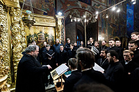 Затем хор пропел многолетие Святейшему Патриарху Московскому и всея Руси Кириллу, Президенту Российской Федерации, наместнику обители с братией и всем православным христианам.
