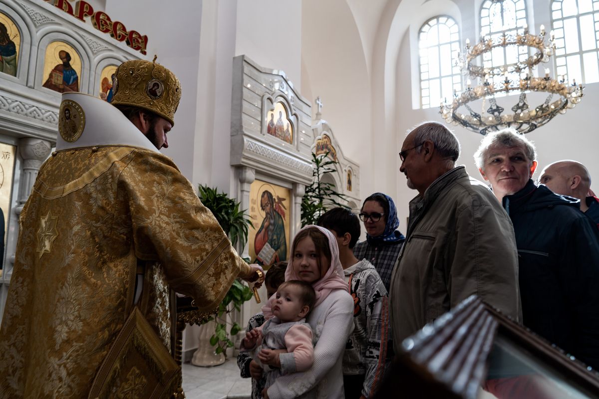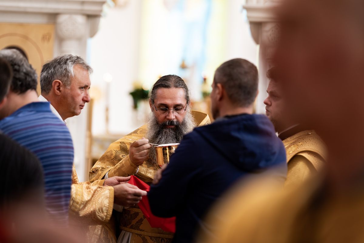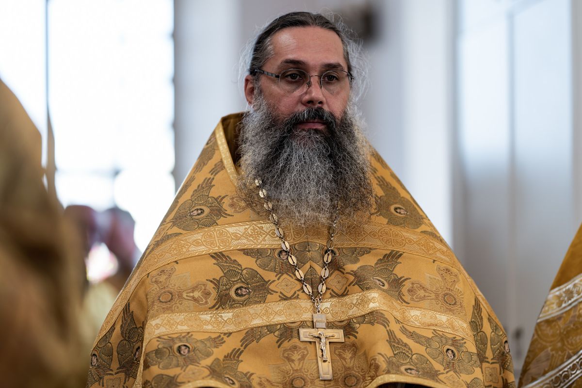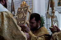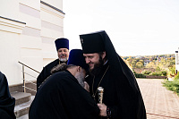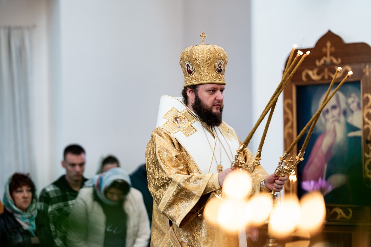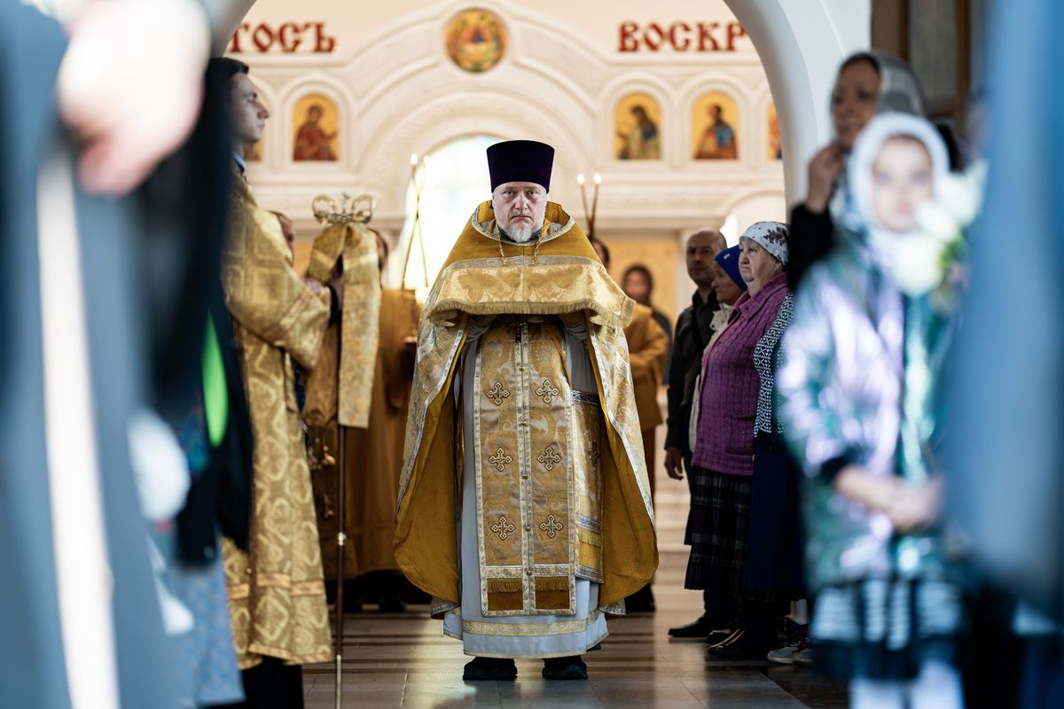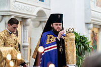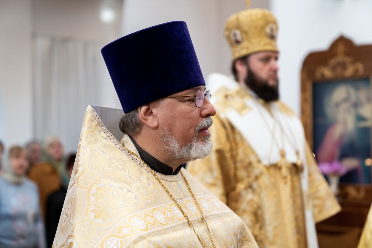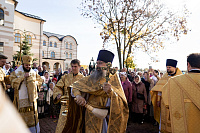 По окончании литургии состоялся торжественный крестный ход, после которого настоятель храма протоиерей Александр Харламов обратился к архиерею со словами приветствия и поблагодарил владыку за совершённое богослужение.