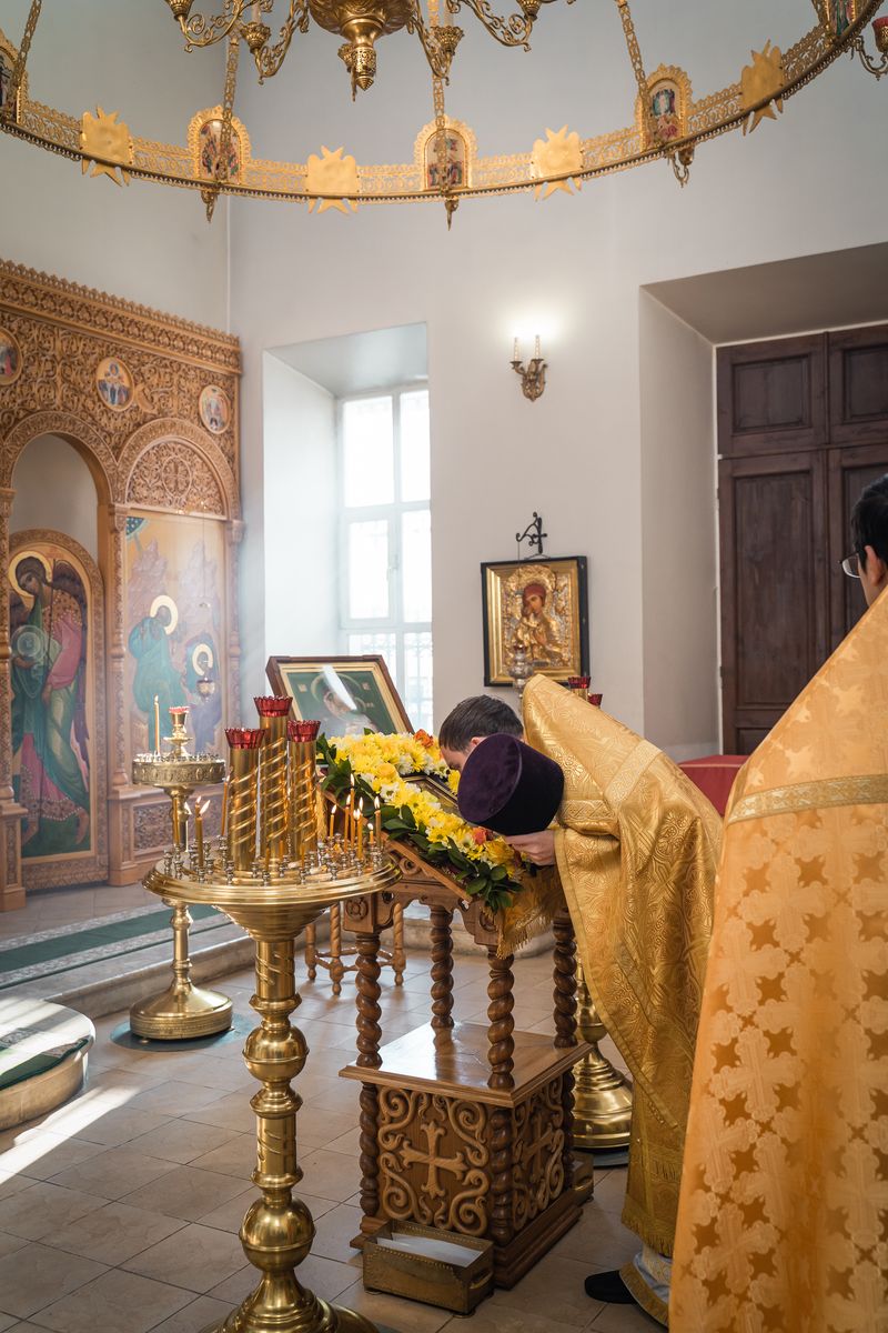 После Божественной литургии состоялся крестный ход с чтением молитвы Иоанну Богослову, по окончании которой всем прихожанам раздали копию каменной барельефной иконы «Богоматерь с Младенцем Христом и предстоящим Иоанном Богословом» хранящиеся в нашем храме. На обороте православный календарь на 2023 год. Для всех присутствующих было организовано чаепитие.