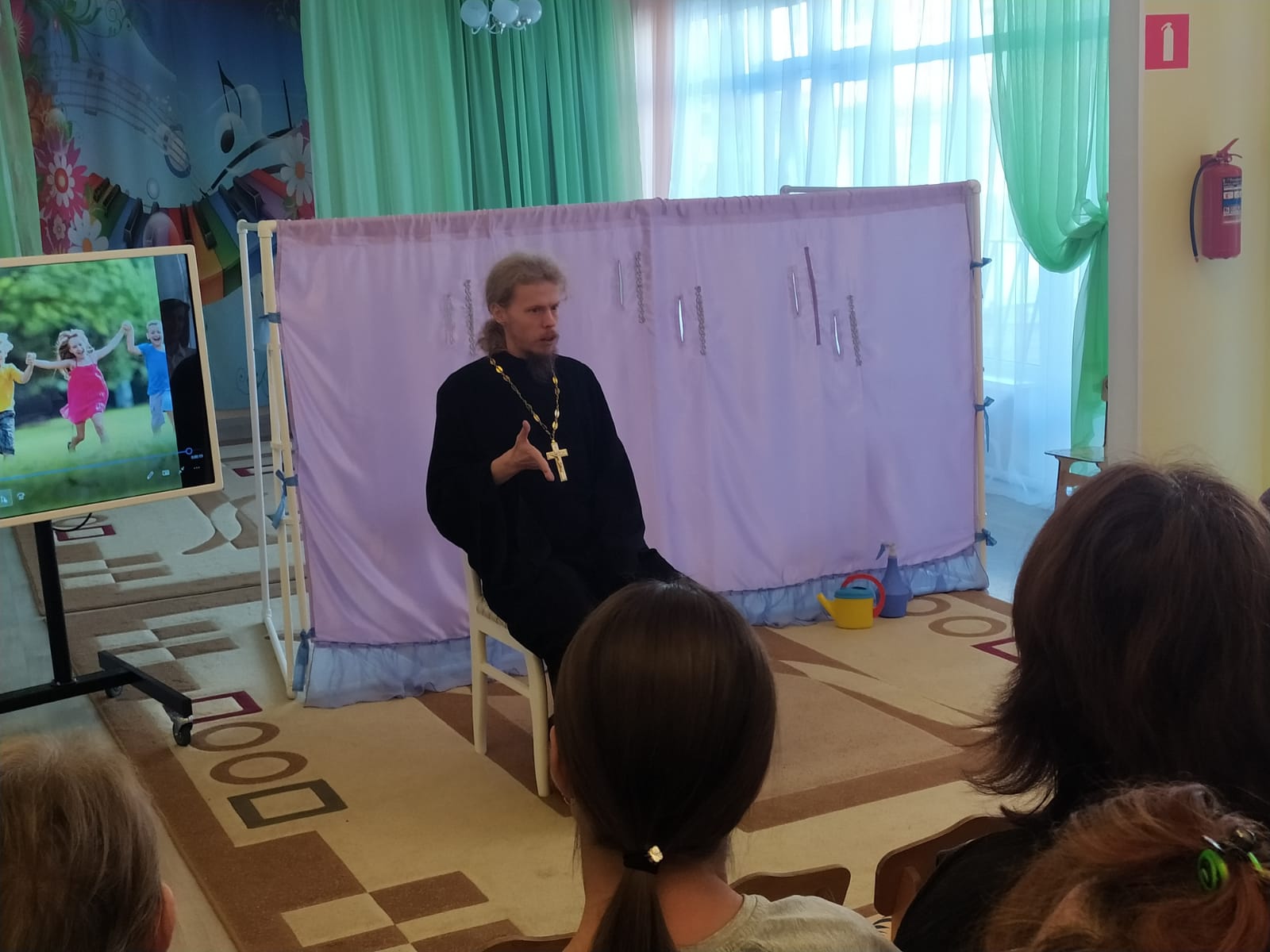 12 октября ответственный по вопросам семьи, защиты материнства и детства Коломенской епархии священник Димитрий Шаповалов посетил МБДОУ Детский сад №40 г. Коломна. Сотрудники садика показали программу, посвящённую празднику Покрова Пресвятой Богородицы. Затем о. Димитрий провел беседу с воспитателями, на которой обсуждались проблемные вопросы воспитания.