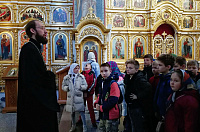 В дни школьных каникул Богородицерождественский храм посетили ученики и педагоги гимназии №18 г. Королёва. Священник Иоанн Колчин рассказал ребятам об истории храма, ответил на многочисленные вопросы, вместе освятили воду на водосвятном молебне и попросили у Господа благословения на дальнейшую учебу.