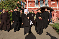 Его Высокопреосвященству сослужили: секретарь Коломенского епархиального управления протоиерей Андрей Рыбин, благочинный 1-го Раменского округа игумен Никодим (Лунёв), настоятель храма иерей Анатолий Чепиженко, благочинный 1-го Бронницкого округа иерей Сергий Себелев и клирики благочиния.