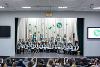 На сцене актового зала, в присутствии большого количества гостей, ученики первых классов прочитали стихи, исполнили песни, а затем были торжественно посвящены в гимназисты.