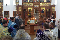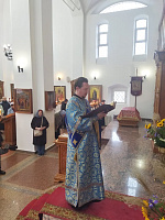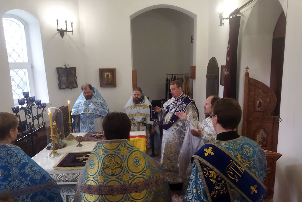28 октября, в день празднования иконе Божией Матери «Спорительница хлебов», в Преображенском храме г. Долгопрудный благочинный Долгопрудненского церковного округа протоиерей Андрей Хмызов в сослужении благочинного Солнечногорского церковного округа протоиерея Антония Тиркова и духовенства Долгопрудненского благочиния совершил Божественную литургию.