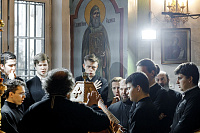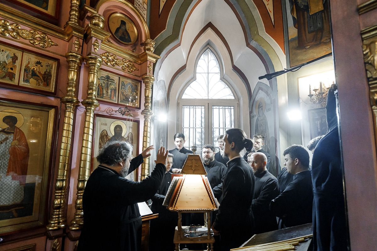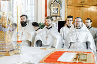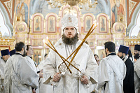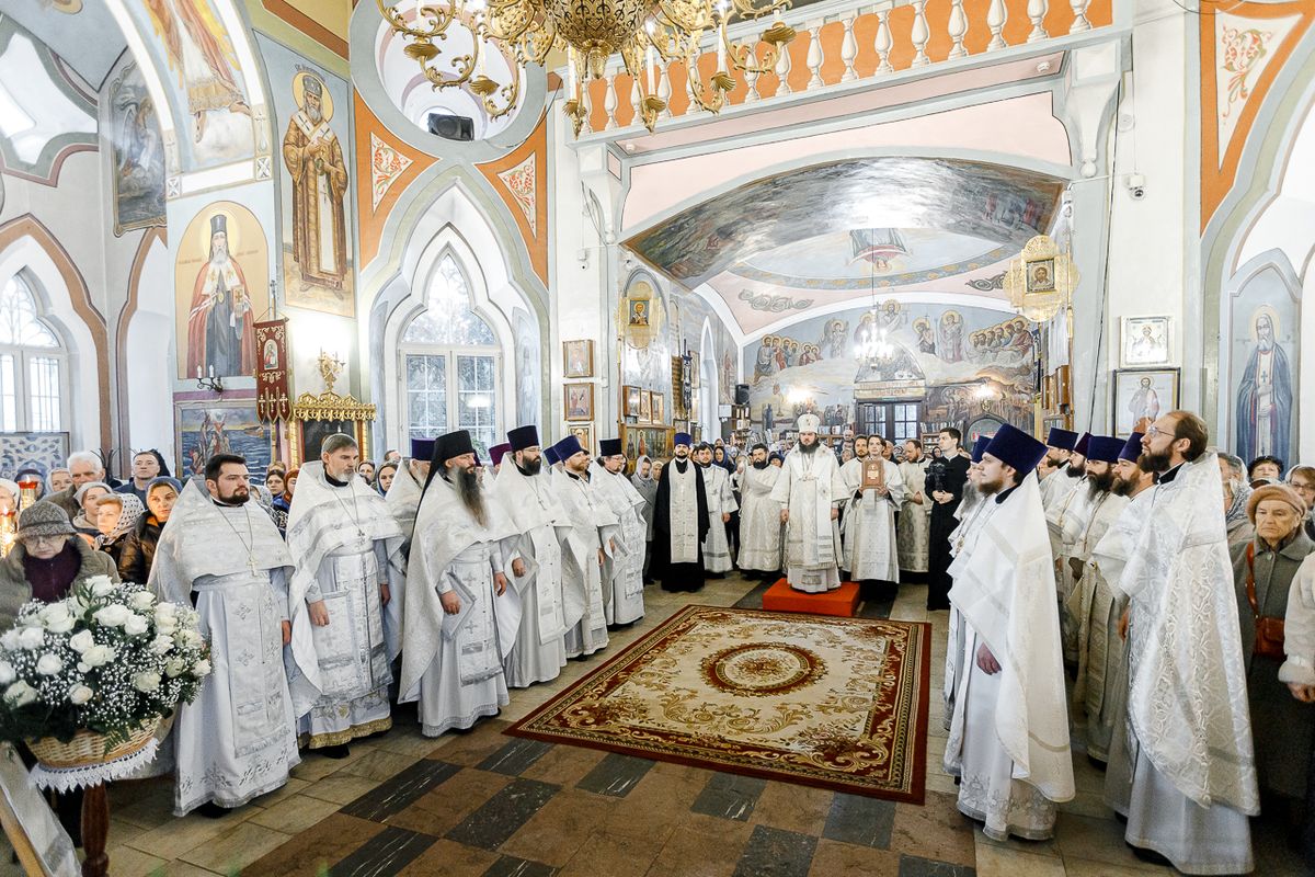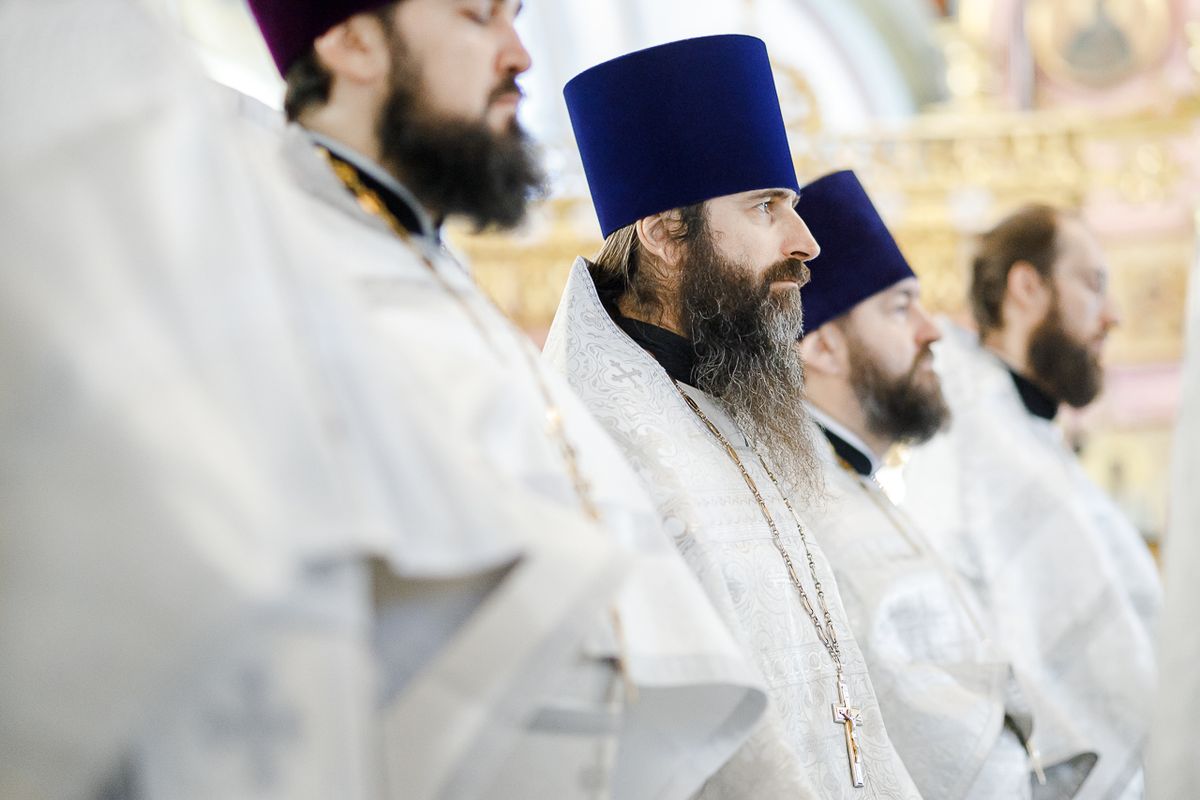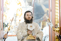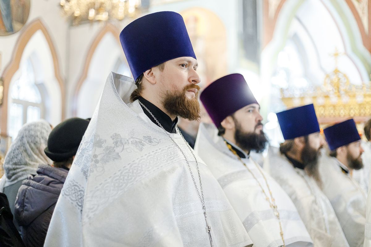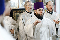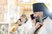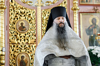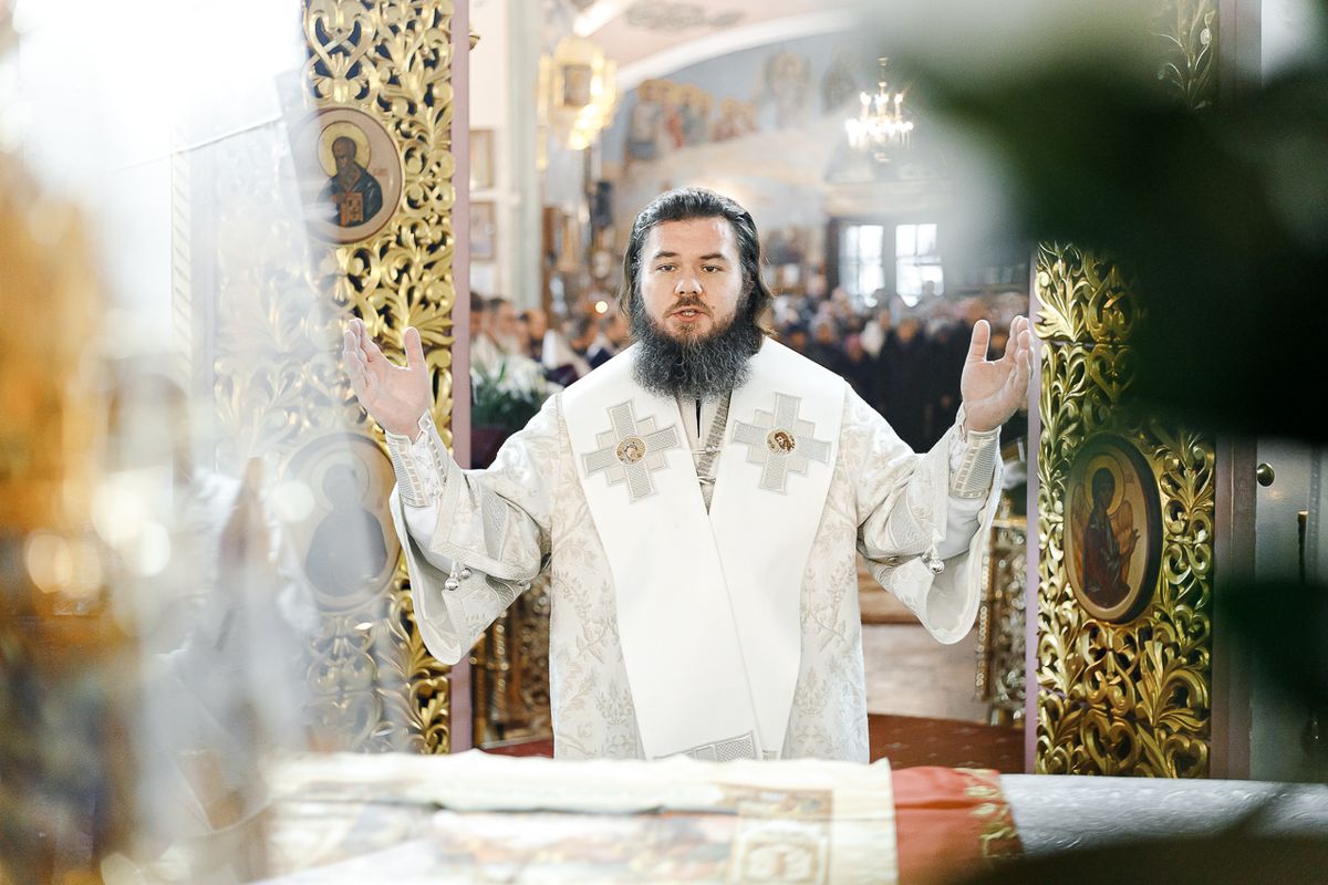 После заамвонной молитвы проповедь произнес настоятель Вознесенской Давидовой пустыни игумен Сергий (Куксов).