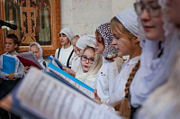 Во время литургии пели два хора: Детский хор воскресной школы под управлением С. В. Ковтуненко и взрослый хор под управлением регента А.В. Дедуха.