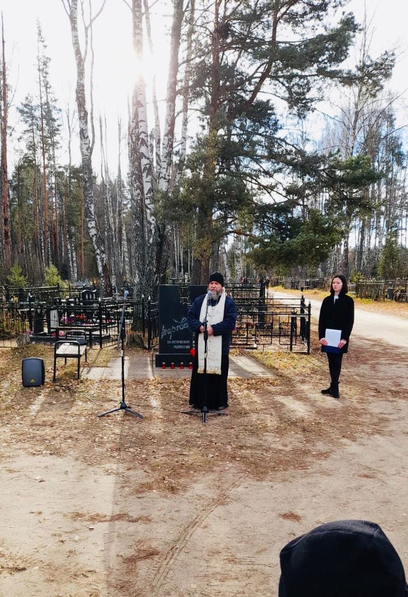 В этот день клирик Преображенского храма п. Запрудня протоиерей Виталий Шумилов совершил панихиду о всех православных христианах, безвинно погибших в годы советских репрессий, у памятника жертвам политических репрессий в поселке Запрудня.