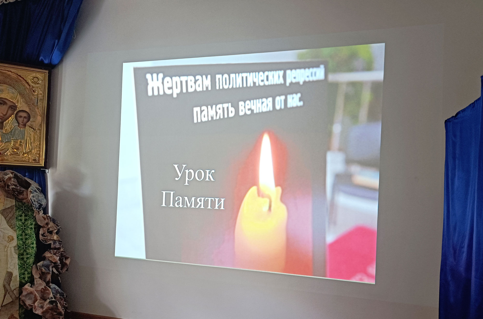 В храме была совершена панихида по погибшим. Прихожане молитвенно почтили память жертв репрессий и приняли участие в чтении имен жертв политических репрессий.