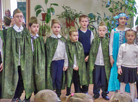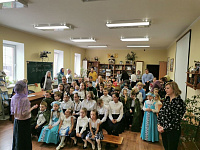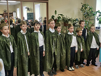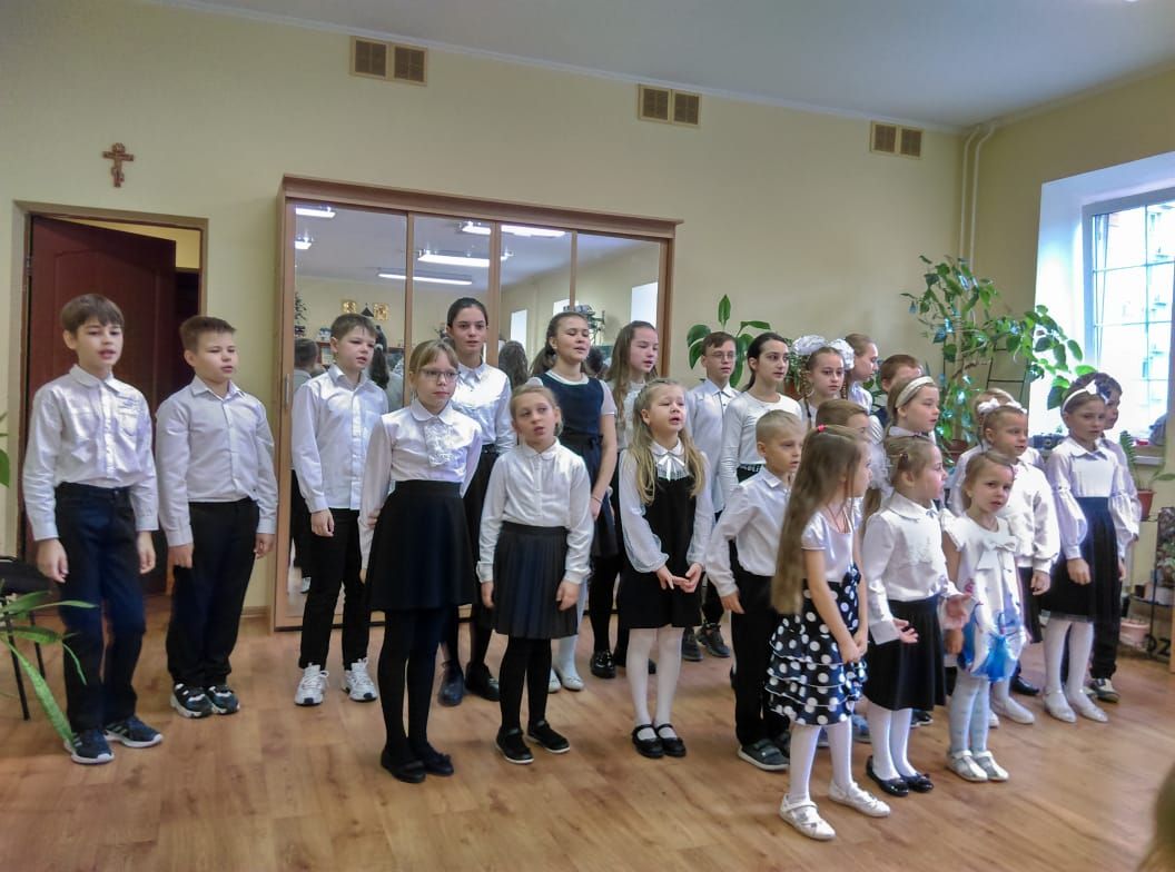 Воспитанники воскресной школы выступили с патриотической программой перед прихожанами храма и родителями. В программе звучали песни военных лет, стихи о России, о духовном и молитвенном подвиге преп. Сергия Радонежского. Были исполнены музыкальные произведения на гуслях, скрипке, флейте, фортепиано. Детьми били написаны письма воинам. Произведен сбор средств для беженцев.