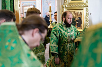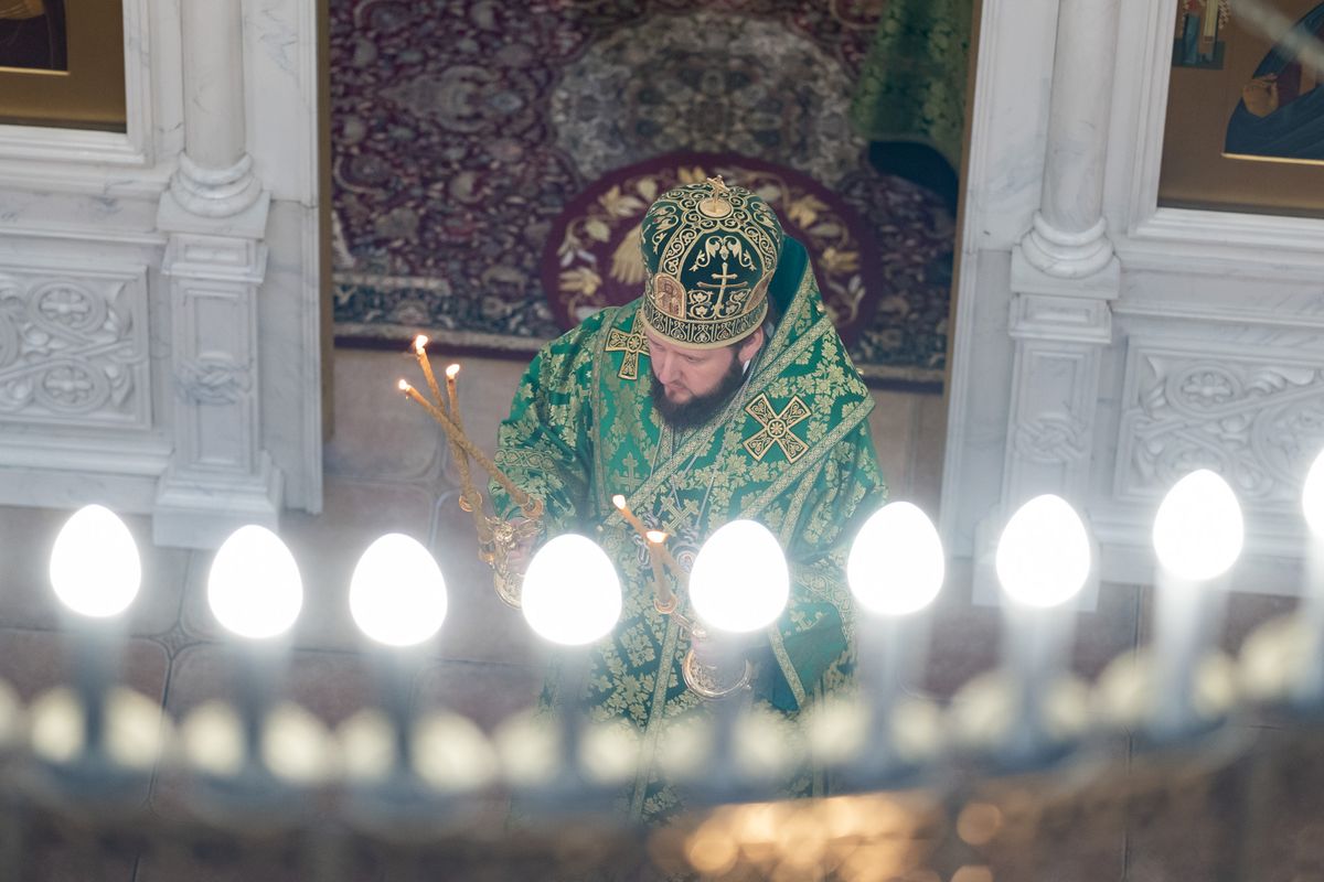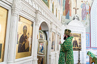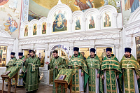 По сугубой ектении была вознесена молитва о Святой Руси. Богослужебные песнопения исполнил архиерейский хор под управлением Александра Веретенникова.