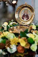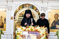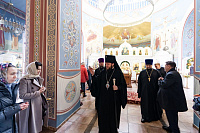 По окончании богослужения настоятель храма поблагодарил архиепископа Аксия за совместную службу и преподнёс в дар специально написанную для владыки икону преподобного Иосифа Волоцкого. Владыка поздравил духовенство и мирян с праздником и обратился к собравшимся с архипастырским словом.